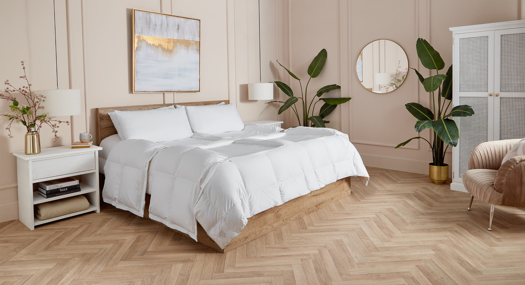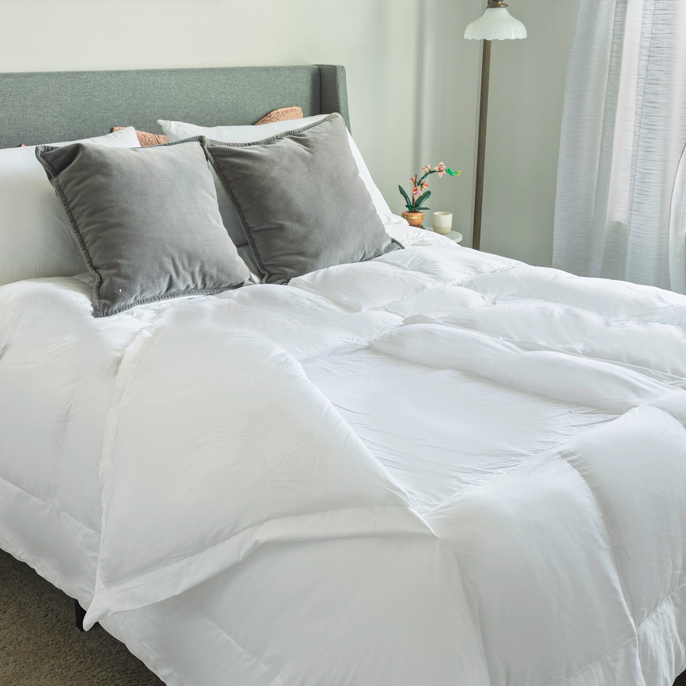 Made with 100% luxurious cotton and premium down or down alternative, all responsibly sourced and sewn with heirloom baffle-box construction. Every seam and window is carefully reinforced for strength and lasting comfort.